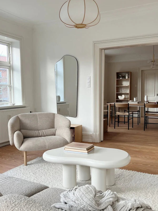 Adoro la forma dolcemente curva. Lo specchio dona all’ambiente un’atmosfera calma e raffinata. Assolutamente consigliato!
